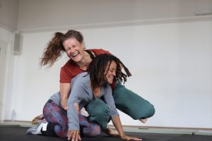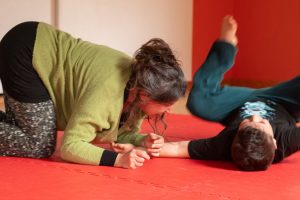 Avec le Playfight de Matteo Tangi, nous ouvrons un espace à la fois pour rencontrer notre puissance intérieure et pour écouter nos émotions, exprimer nos limites, exercer notre consentement :  l’intention est de se connecter à notre corps, à notre force et à notre élan, tout en restant en lien avec le partenaire qui playfighte avec nous.