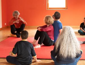 Avec le Playfight de Matteo Tangi, nous ouvrons un espace à la fois pour rencontrer notre puissance intérieure et pour écouter nos émotions, exprimer nos limites, exercer notre consentement :  l’intention est de se connecter à notre corps, à notre force et à notre élan, tout en restant en lien avec le partenaire qui playfighte avec nous.
